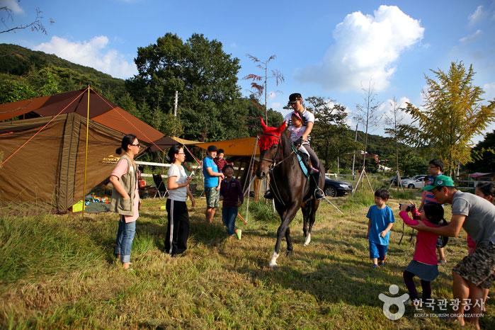 승마 체험과 캠핑을 동시에 즐길 수 있는 복합 공간이에요. 넓은 잔디밭과 시설이 잘 정비되어 있어 가족 단위 캠핑족에게 인기예요. 초보자도 안전하게 승마를 체험할 수 있어 색다른 주말 나들이 장소예요.