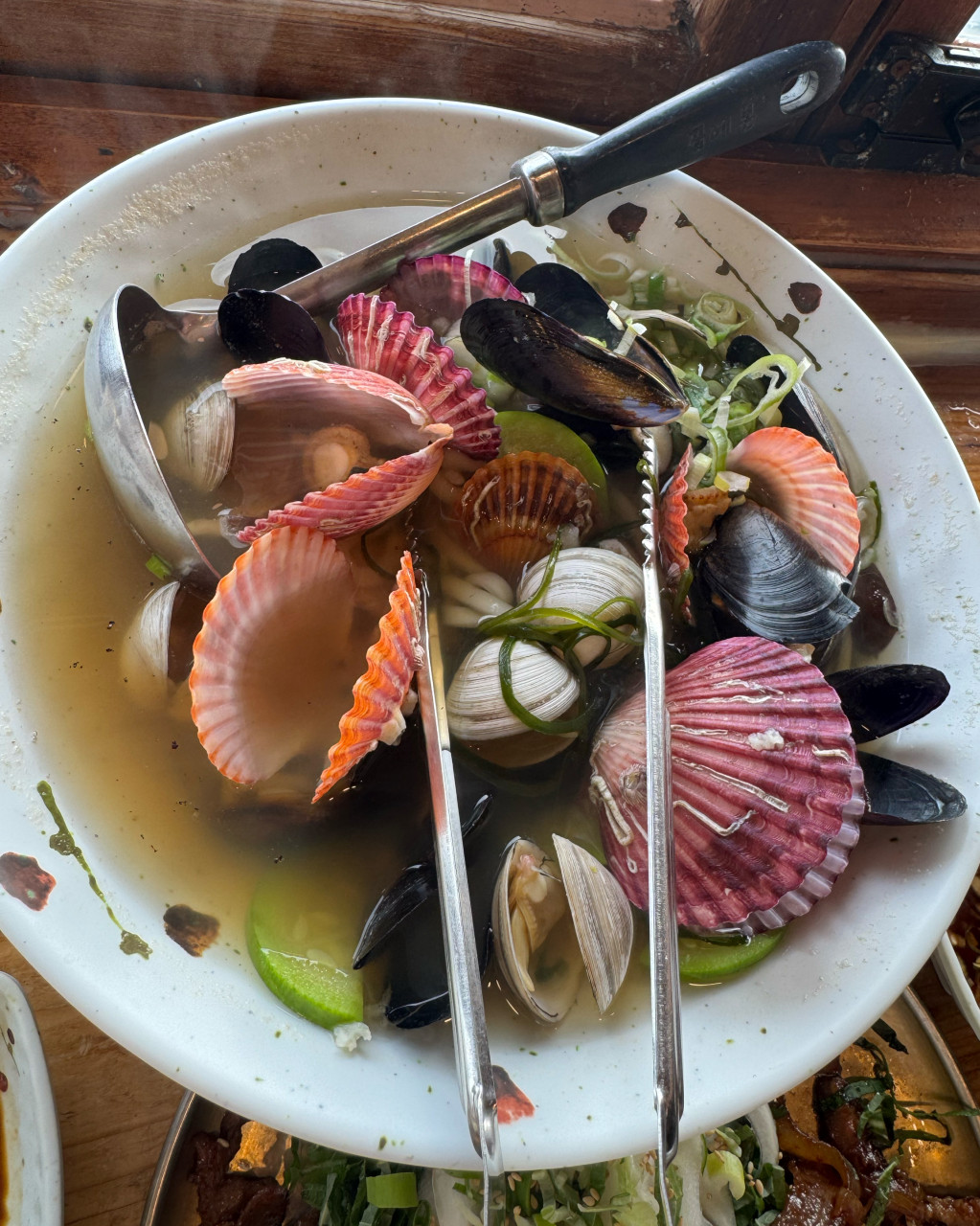 왕해물칼국수 한 그릇에는 가리비, 홍합, 조개 등 싱싱한 해산물이 푸짐하게 들어가 국물 맛이 정말 시원해요.