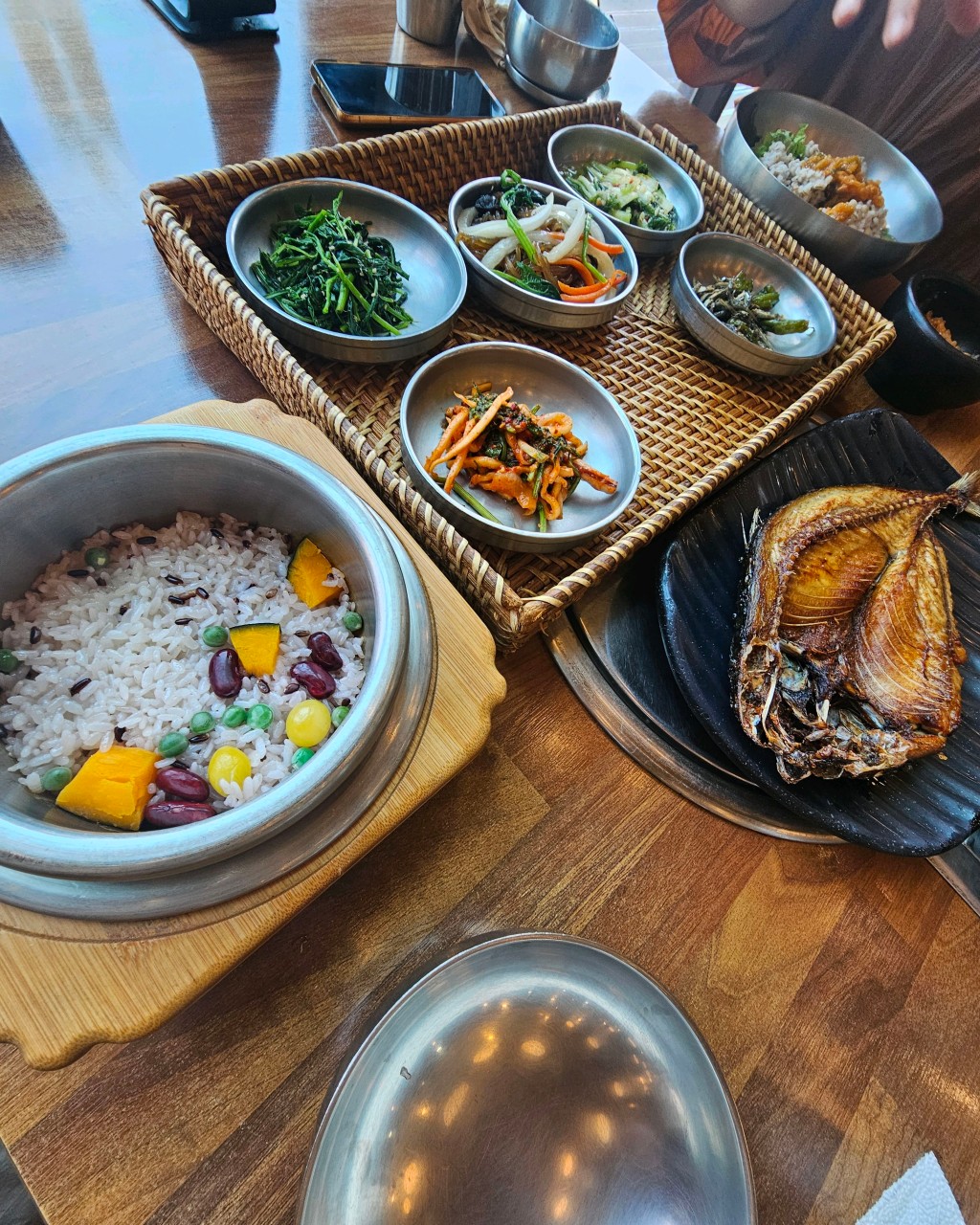 보리꽃은 대왕암공원과 일산해수욕장 사이에 위치한 한식당으로, 구수한 돌솥밥 한 상이 인기인 곳이에요.