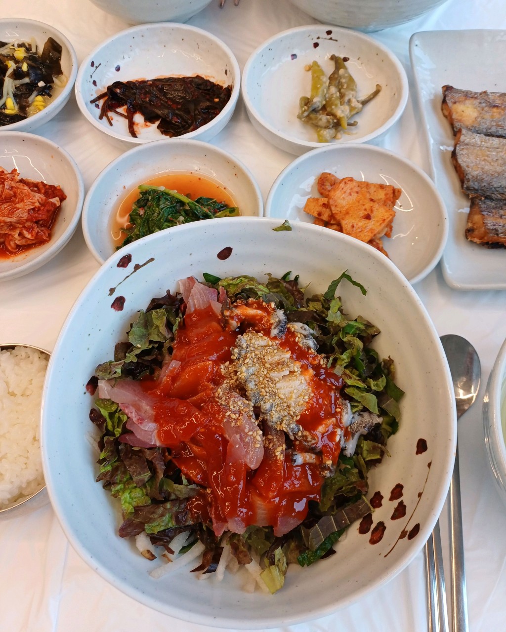 기본 반찬으로 제공되는 갈치구이와 대구지리탕도 수준급이라, 한 끼 식사로 손색이 없어요.