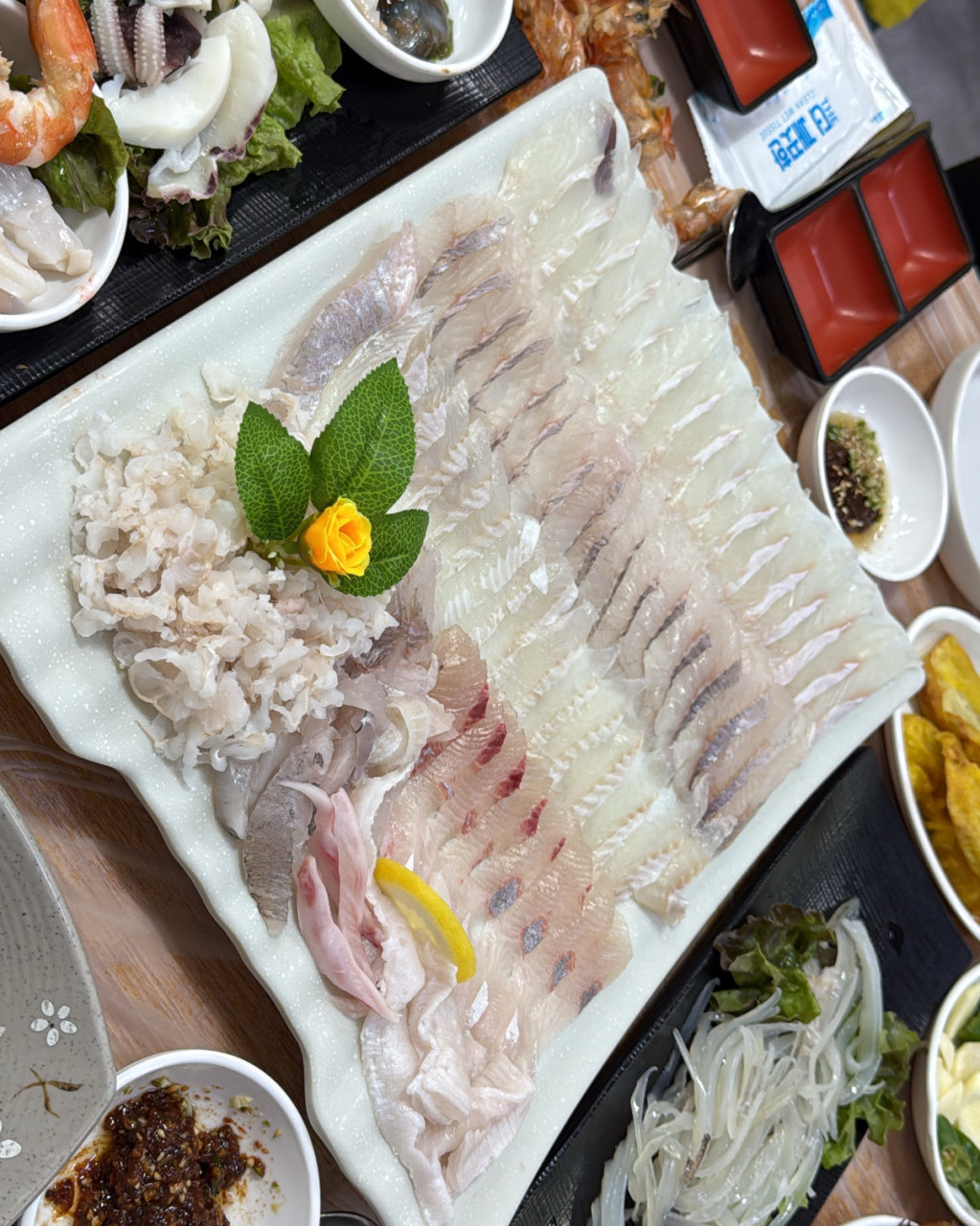 죽변항 근처에 위치해 있으며, 매일 아침 중매인이 직접 선별한 대게와 회를 제공합니다. 밝은 노란 간판이 눈에 띄며, 친절한 응대와 푸짐한 서비스로 단골이 많은 곳이에요. 울진대게 외에도 회덮밥, 꽃새우, 물회 등 다양한 해산물 요리가 가득합니다.