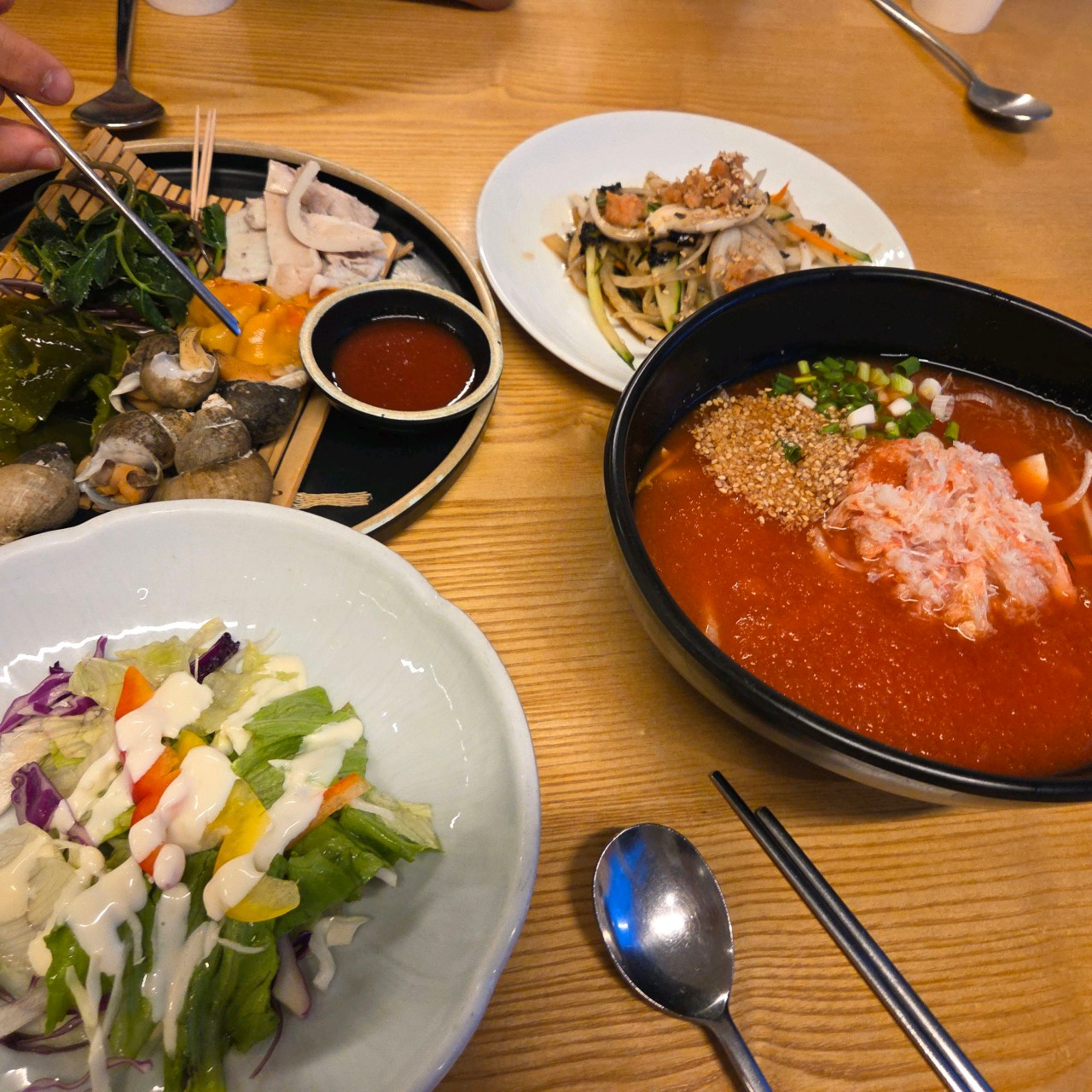 다양한 홍게요리를 코스 형태로 제공하는 후포리백년식당은 이색적인 메뉴 구성이 돋보입니다. 간장게장, 게살 물회, 해산물 모둠 등 7가지 이상의 코스 요리가 기본으로 제공되며, 홍게 요리의 새로운 매력을 느낄 수 있는 맛집이에요. 현재는 이전 준비로 일부 운영이 제한적일 수 있으니 방문 전 확인이 필요합니다.